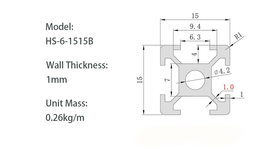 | Tamaño de la sección | 15 mm*15 mm | |