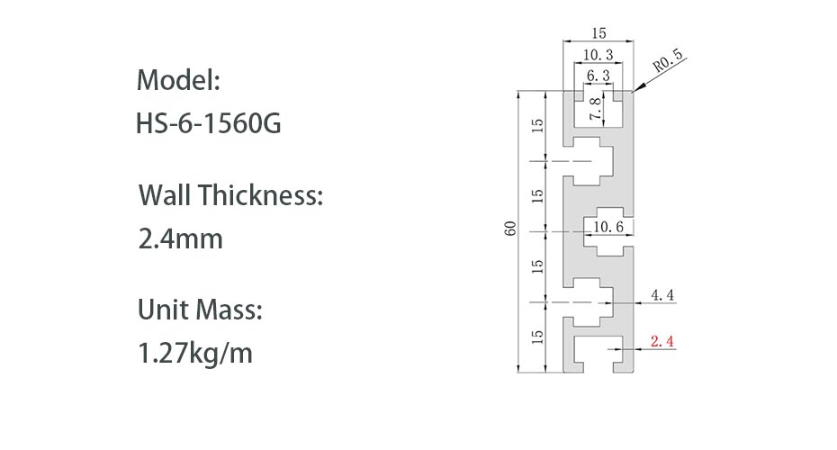 El perfil de aluminio de la serie 1560G es un elemento básico que "soporta carga" en aplicaciones de marcos industriales. En comparación con perfiles más pequeños, su cara de 60 mm de ancho presenta una estructura de múltiples ranuras, lo que mejora significativamente la rigidez estructural y la capacidad de carga. Se utiliza comúnmente para construir bases de equipos, marcos de estaciones de trabajo y protectores de seguridad de alta resistencia. Proporciona soporte estructural estable para equipos de gran escala manteniendo al mismo tiempo la ventaja de una fácil instalación.