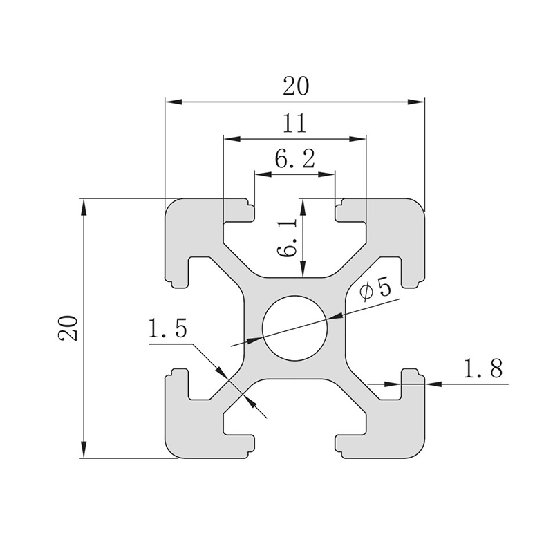 | Dimensiones de la sección | 20 mm*20 mm | |