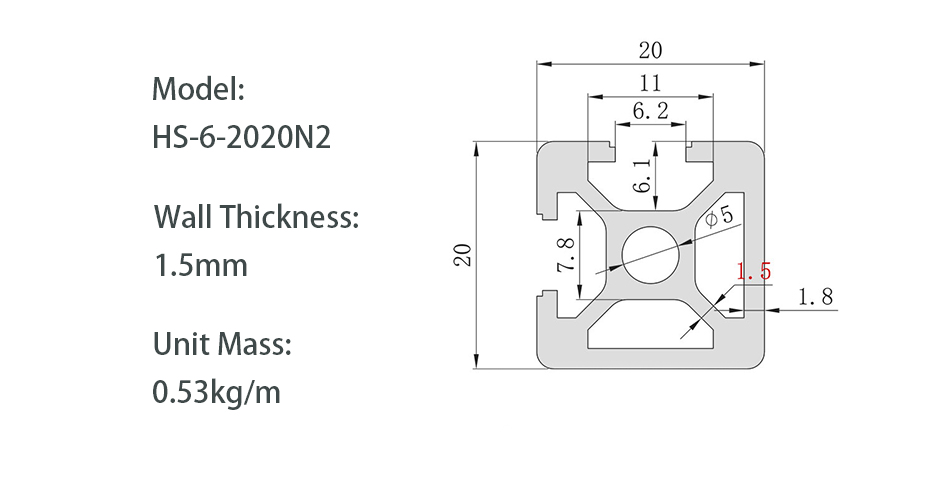 | Dimensiones transversales | 20 mm × 20 mm | |