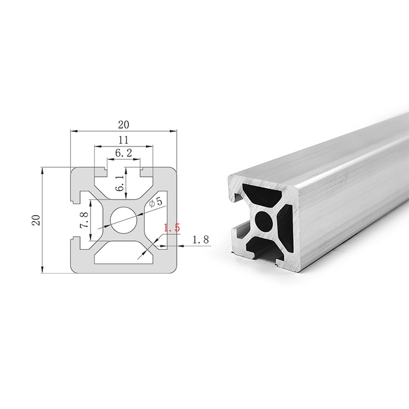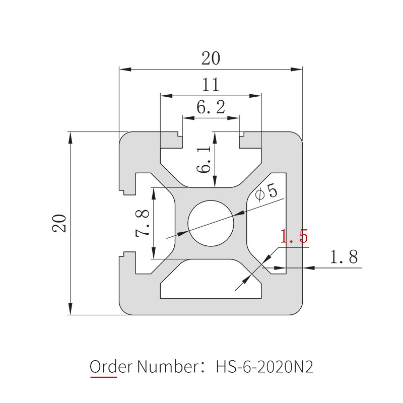 El perfil de aluminio 2020N2 es el modelo de ranura cerrada de doble cara de la serie 20. Según la norma 2020, se cierran dos aberturas de ranura adyacentes conservando las ranuras de montaje en los otros dos lados, con una dimensión de sección transversal de 20×20 mm y un ancho de ranura de 6 mm. El cuerpo está fabricado en aleación de aluminio 6063-T5 con tratamiento superficial anodizado. Las caras cerradas son lisas y sin ranuras, y se utilizan principalmente para conexiones estructurales en las secciones medias de los marcos. Después del montaje, las superficies internas y externas del marco son lisas y sin ranuras, lo que facilita la limpieza y mejora la apariencia visual general. Adecuado para gabinetes de equipos, mesas de operaciones y estantes de exhibición con altos requisitos de estética y limpieza.