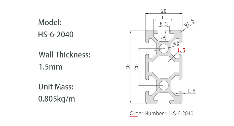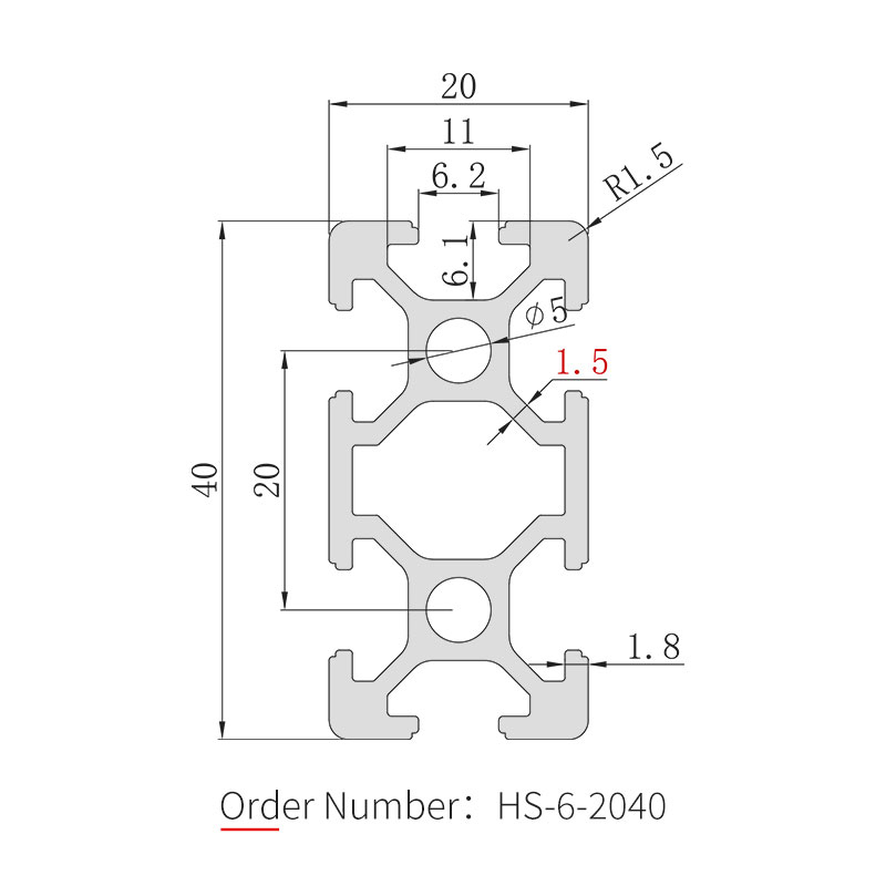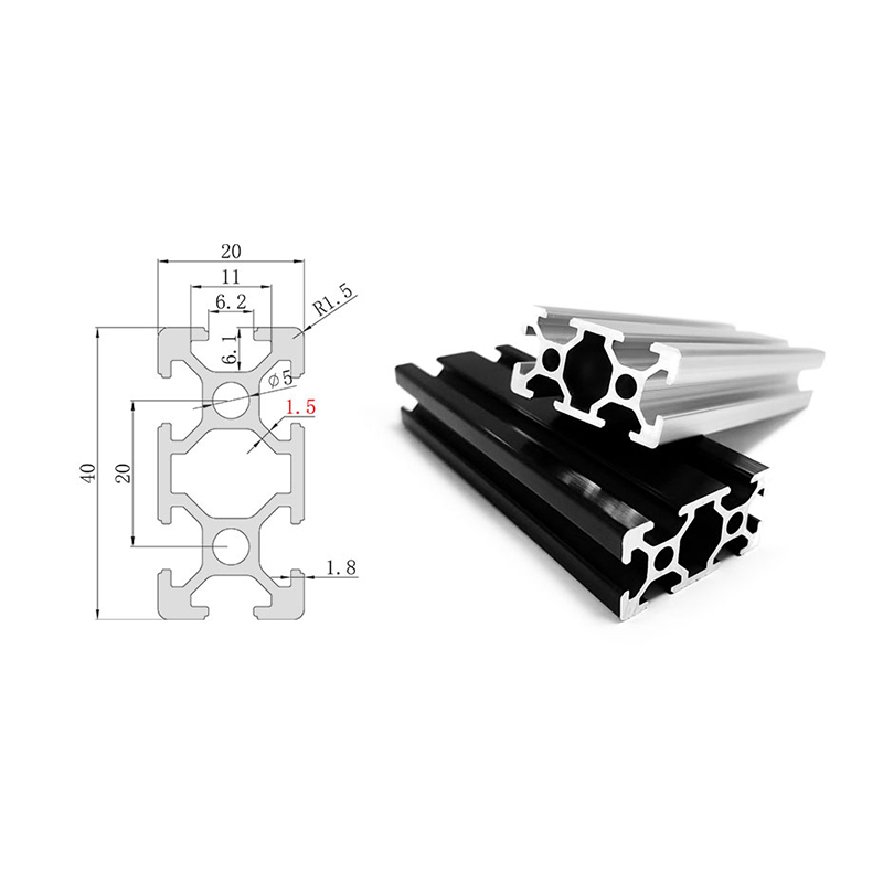 El perfil de aluminio 2040 es el modelo de sección transversal rectangular de la serie 20, con dimensiones de 20×40 mm y un ancho de ranura de 6 mm. El cuerpo está fabricado en aleación de aluminio 6063-T5 con tratamiento superficial anodizado. Comúnmente utilizado junto con perfiles de aluminio 2020; en comparación con el perfil 2020, la dirección de ancho de 40 mm proporciona una mejor resistencia a la flexión. Se utiliza comúnmente para bastidores pequeños, bases de equipos, vigas de soporte de bancos de trabajo, barreras de líneas transportadoras y marcos de cubiertas protectoras, lo que lo convierte en una opción popular en estructuras de carga liviana que equilibran costo y resistencia.