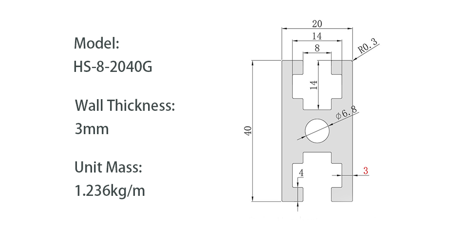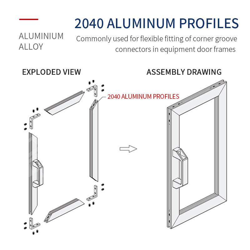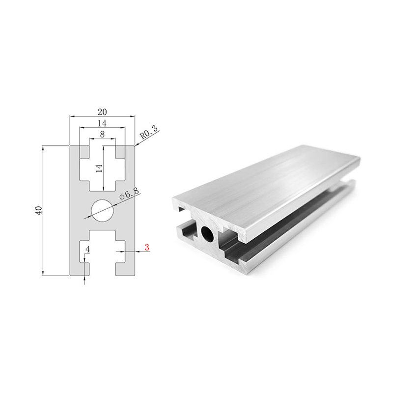 El perfil de aluminio de ranura cuadrada 2040 es un producto destacado en el mercado de perfiles de aluminio modulares, perteneciente al sistema de ranura cuadrada. El cuerpo está fabricado en aleación de aluminio 6063-T5 con tratamiento superficial anodizado, con un peso unitario de aproximadamente 1,43 kg/m y un espesor de pared de 4 mm. La cara de 40 mm presenta un diseño suave sin ranuras, utilizado principalmente para marcos de puertas de equipos, gabinetes, bastidores de instrumentos y paneles de visualización, lo que lo convierte en un perfil de marco de puerta de uso común en estructuras de marco livianas. Las conexiones suelen utilizar tuercas cuadradas M6 con lados opuestos de 14 mm y tornillos de cabeza hueca de alta resistencia.
