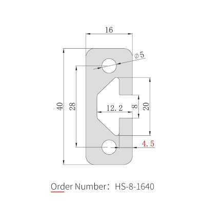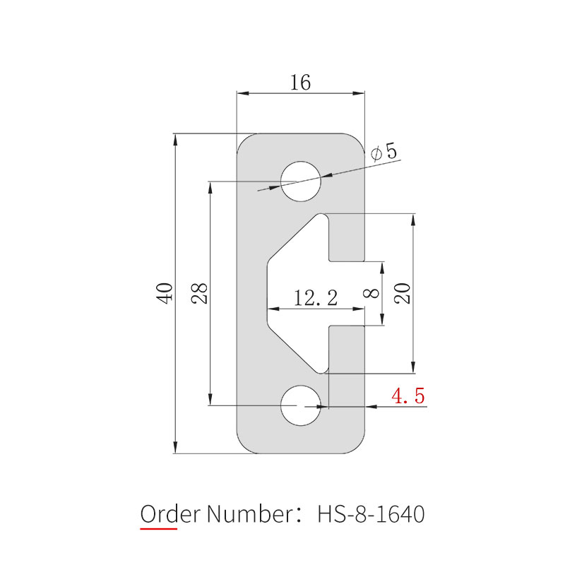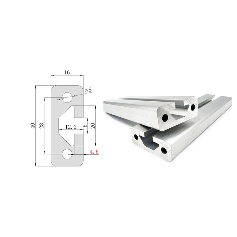 El perfil de aluminio 1640 es el modelo de carril guía dedicado de la serie 16, con dimensiones de 16×40 mm y un ancho de ranura de 8 mm, compatible con pernos en T dedicados y tuercas de brida M6 de la serie 30. El cuerpo está fabricado en aleación de aluminio 6063-T5 con tratamiento superficial anodizado. Comúnmente utilizado para canales de rieles guía, fabricación de marcos de puertas, bancos de trabajo de líneas de ensamblaje, cubiertas protectoras de equipos mecánicos y estructuras de marcos automatizadas. Los soportes de esquina 3030 o 4040 se pueden utilizar como refuerzo durante la conexión.